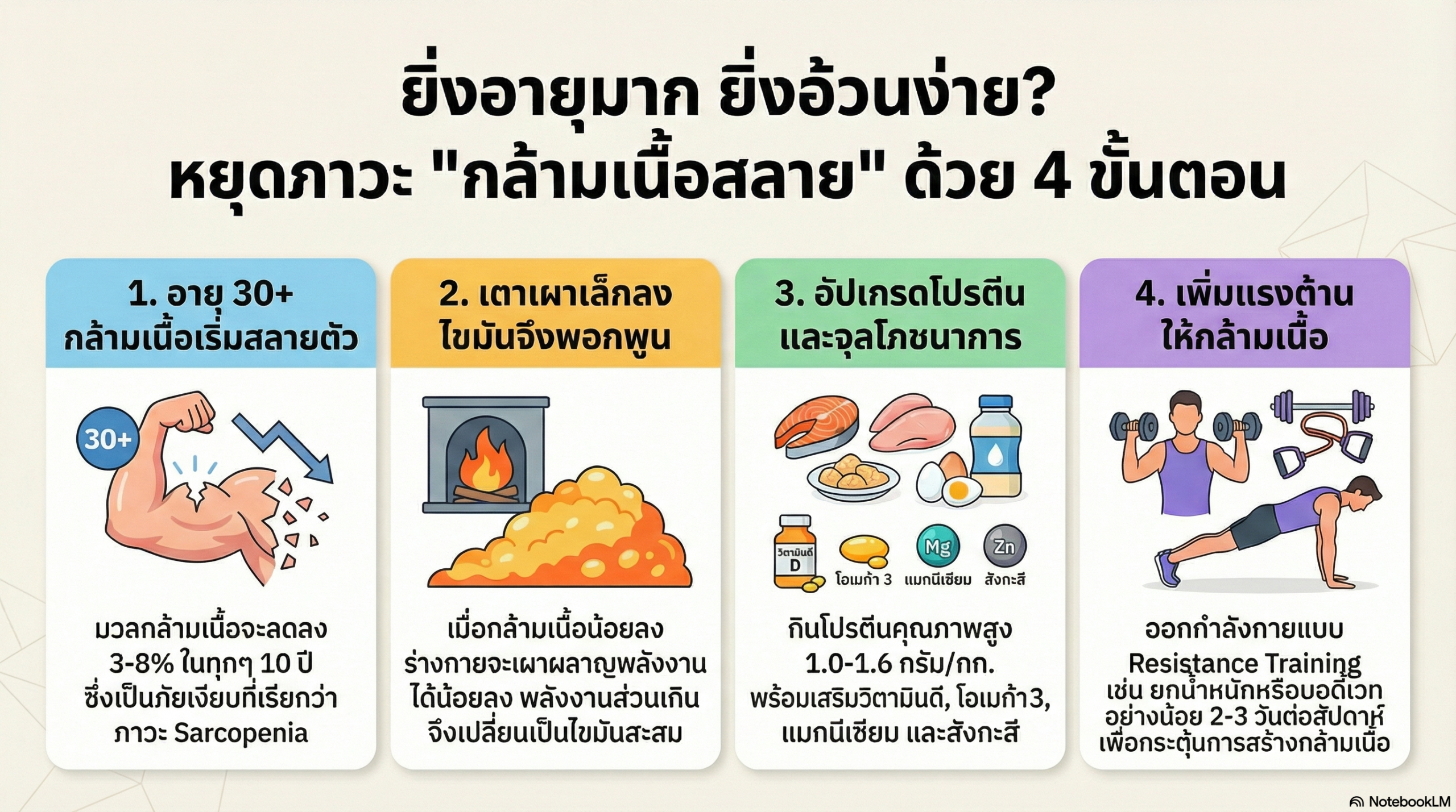 1. ทำความรู้จักภาวะ Sarcopenia (ภัยเงียบที่ขโมยกล้ามเนื้อ)