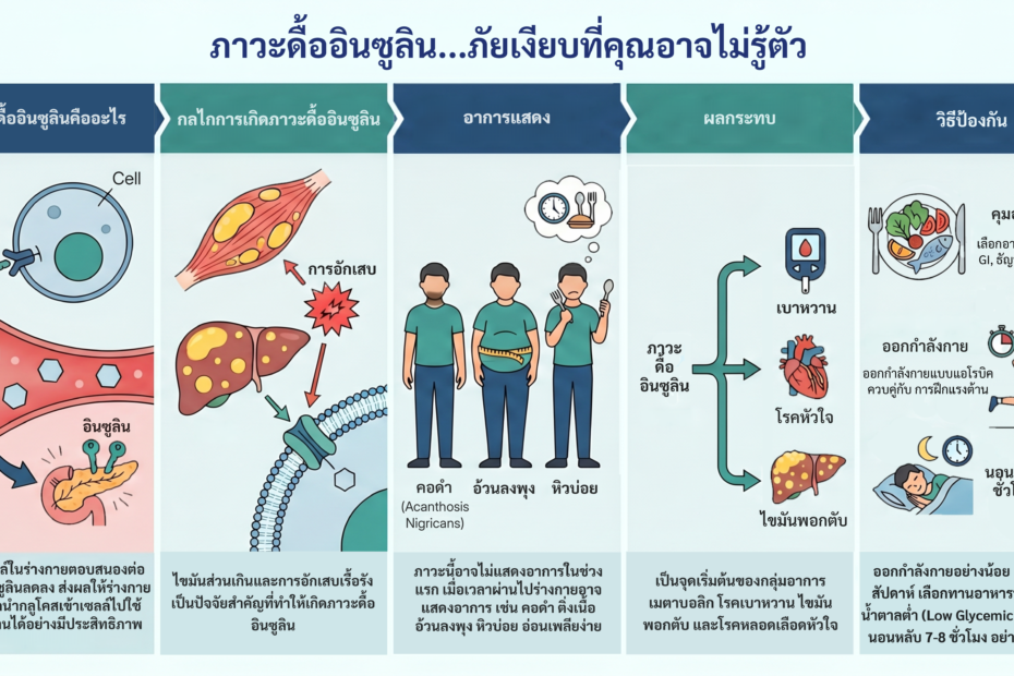 ภาวะดื้ออินซูลินเป็น “ภัยเงียบ” ที่เริ่มต้นจากระดับเซลล์ และอาจดำเนินไปสู่โรคร้ายแรงโดยที่เราไม่รู้ตัว สิ่งสำคัญคือการตระหนักรู้และปรับพฤติกรรมตั้งแต่เนิ่น ๆ